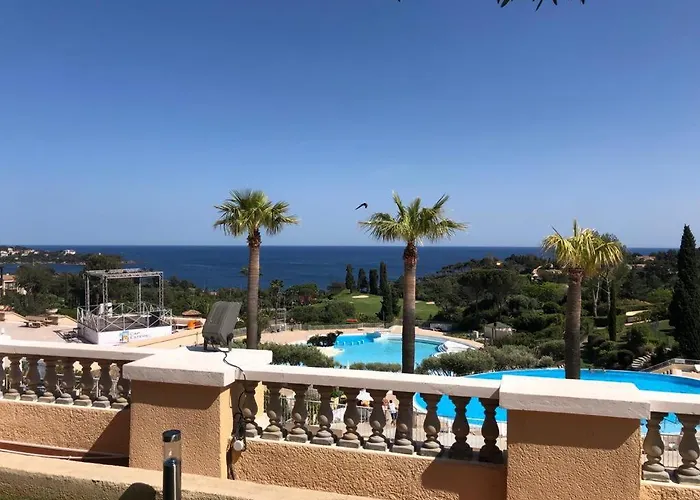 Lägenheten har ett strandnära läge precis bredvid Valescure Golf. Närliggande On Dirait Le Sud och Maison Père Léon kan nås inom 5 minuter till fots.